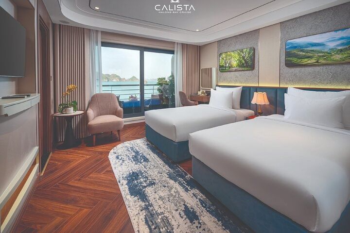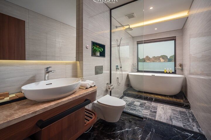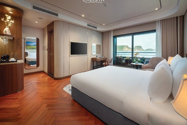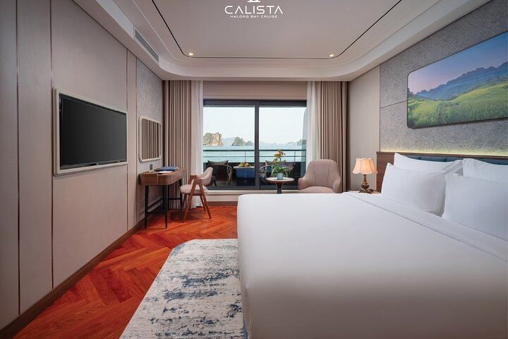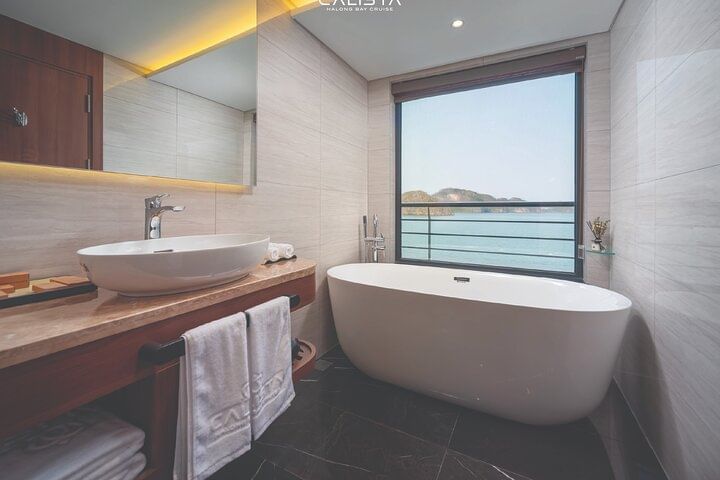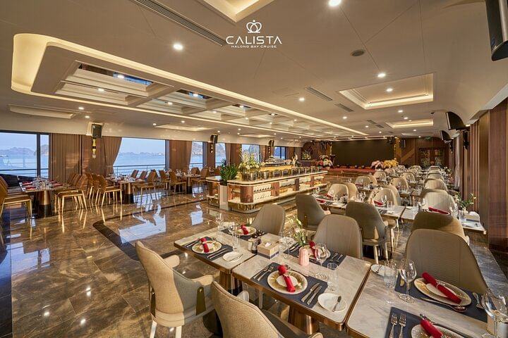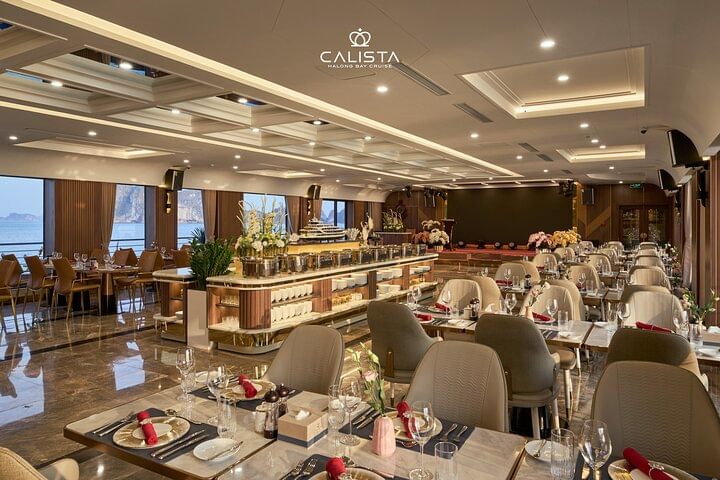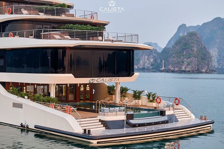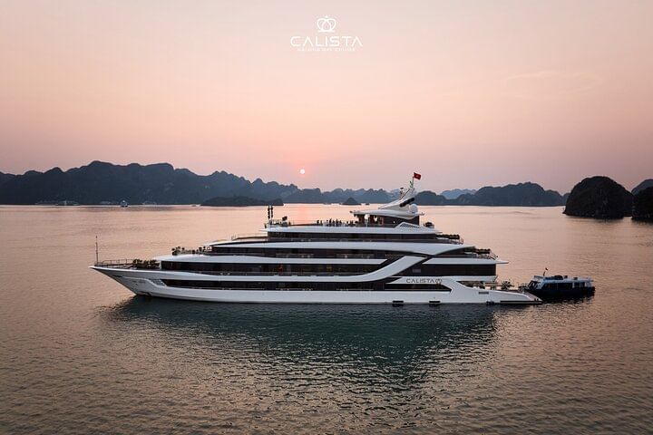 Experience the pinnacle of elegance with a 2-day voyage on the 6-star Calista Cruise, the most luxurious ship in Halong Bay. Sail past breathtaking limestone islands, kayak through hidden lagoons, and visit pristine caves. Indulge in world-class dining, unwind with premium spa treatments, and enjoy spacious, opulent cabins with panoramic views. Every detail is designed to offer you an unforgettable journey in ultimate comfort and style.