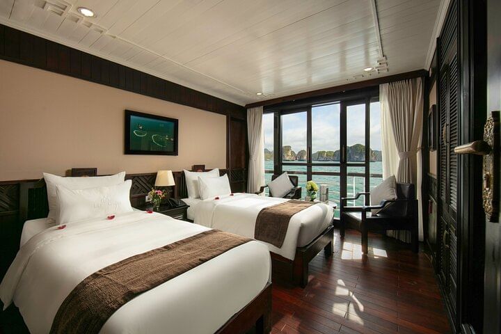 You may participate in a range of activities and explore both Halong Bay and Bai Tu Long Bay on this two-day group excursion that departs from Hanoi. You don't have to worry about making many plans for food, housing, transportation, or other things; instead, you may spend more time exploring the bay. Take a cooking class, go kayaking, take a bamboo boat trip, or participate in any other activity that your guide and crew have planned. Known for its stunning limestone karsts that rise dramatically out of the emerald seas, Halong Bay is a UNESCO World Heritage Site. As you journey along this natural wonder, your senses will be overcome with sheer awe at the panorama.