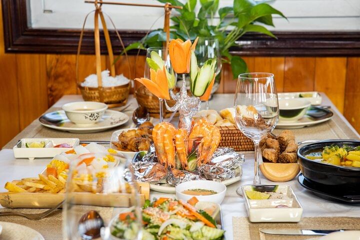 Cong Cruise is proud to be the FIRST 1-DAY CRUISE in Halong, offering an itinerary of up to 7 hours full of activities for guests to experience the most beautiful landscapes of Ha Long Bay, such as Sung Sot Cave, kayaking to Trinh Nu cave for cave adventure, and swimming at Trinh Nu beach while admiring Ti Top Island. Not only is the cruise's route unusual, but visitors get the opportunity to thoroughly immerse themselves in the environment of ancient Vietnamese culture with the design and furnishings evocative of Vietnam's subsidized economy time.
