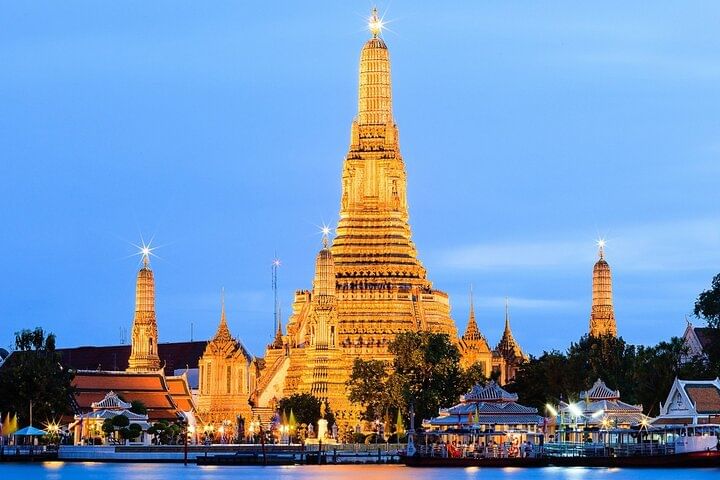 Take a guided tour of the Grand Palace, Wat Pho, and Wat Arun, three of Bangkok's most famous sites, to start your exploration of the city's rich past. As you visit each location, this trip offers comprehensive insights into Thai history, culture, and architecture. Begin with awe at Wat Pho's Reclining Buddha, continue to the magnificent Wat Arun across the Chao Phraya River, and end at the Grand Palace, which is home to the Temple of the Emerald Buddha. Select between morning or afternoon departures, and take advantage of a customized small-group experience that includes round-trip hotel transportation, a boat ride, and entry fees.