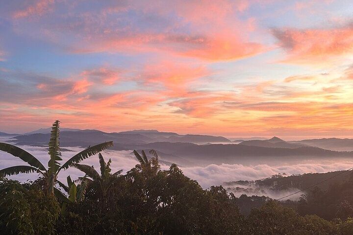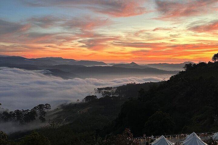 Embark on an enchanting journey through the scenic landscapes of Da Lat. Begin your adventure at Thiên Đường Săn Mây Cầu Đất at 4:00 AM to witness the mesmerizing sunrise above a sea of clouds. Explore the verdant Cau Dat Tea Hill, home to lush tea plantations and wind turbines, before visiting a high-tech strawberry farm and a charming persimmon garden. Conclude your tour at Lời Của Gió, a Northwest-style café nestled amidst nature, offering panoramic views of Da Lat's sparkling valley of lights. Perfect for nature lovers and photography enthusiasts!