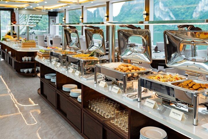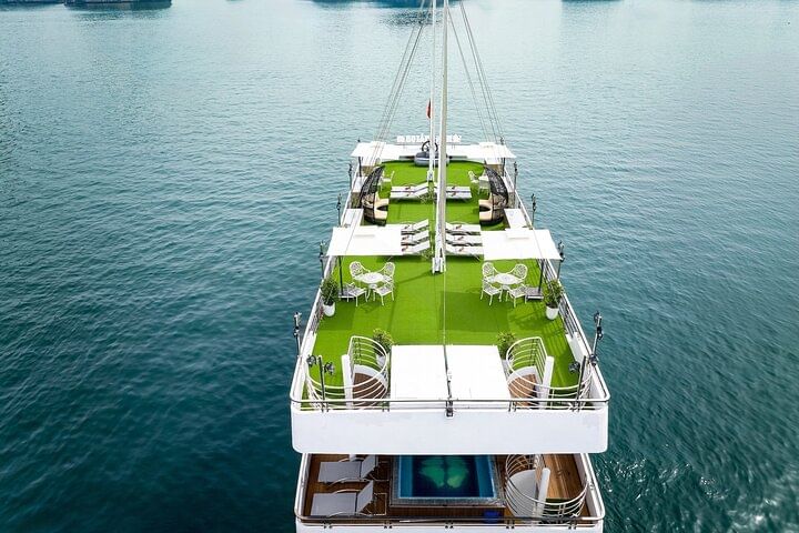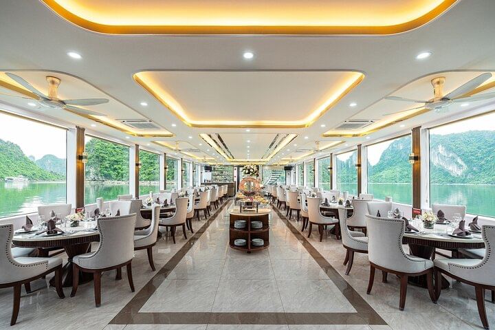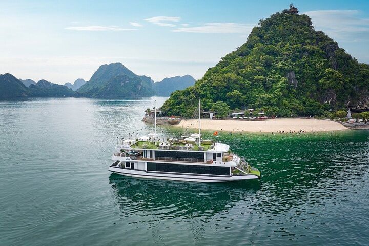Throughout the day, you'll navigate through the bay's tranquil waters, marveling at the breathtaking karst formations. Highlights of the trip include a visit to the mesmerizing Sung Sot (Surprise) Cave, one of the largest and most beautiful caves in Halong Bay. You'll also have the opportunity to kayak around the islands or enjoy a refreshing swim in the bay's clear waters.