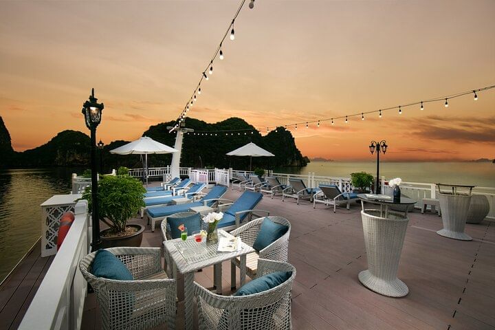 The itinerary is carefully curated to include visits to some of Halong Bay's most famous sites, such as Luon Cave,Tiptop island, Sung Sot Cave. Activities include kayaking, swimming, hiking, and exploring these natural wonders. Onboard, guests can indulge in gourmet meals at the fine dining restaurant, unwind with relaxing treatments at the spa, and partake in various entertainment options.