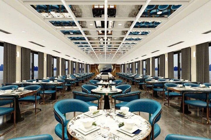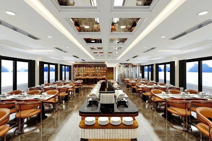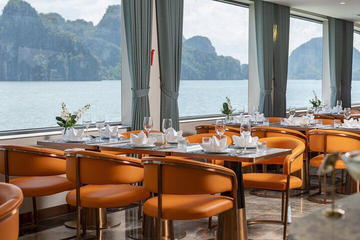 Embark on the brand-new 5-star Leona Day Cruise and experience the unrivaled beauty of Ha Long Bay in style. Glide past towering limestone karsts and emerald-green waters while enjoying the perfect blend of comfort, elegance, and world-class service. Explore iconic landmarks such as the magnificent Sung Sot Cave and the scenic Titov Island, then savor a lavish gourmet lunch freshly prepared onboard. With its sleek modern design, spacious sundecks, and premium amenities, the Leona Cruise delivers a truly unforgettable full-day journey across Vietnam’s legendary bay.