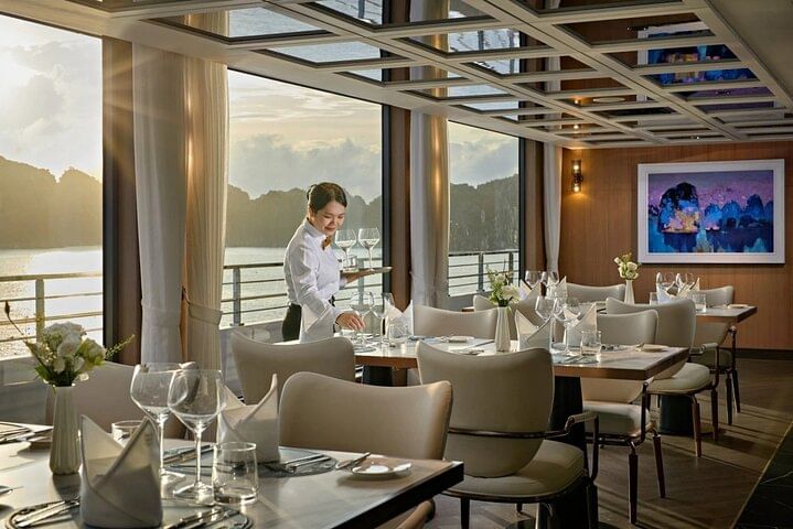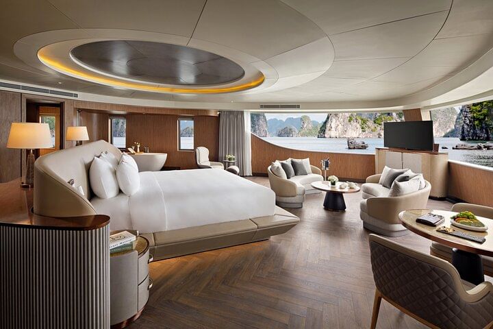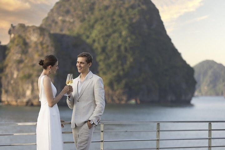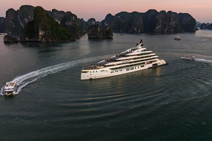 Embark on the Grand Pioneers 6-Star Cruise – 2 Days 1 Night Halong Bay Classic Tour, the ultimate luxury journey designed for discerning travelers. Cruise through the breathtaking limestone karsts of Halong Bay, a UNESCO World Heritage Site, while indulging in world-class amenities and personalized service. Stay in elegantly appointed suites, savor gourmet fusion dining that blends authentic Vietnamese flavors with Western cuisine, and enjoy exclusive activities such as sunset canapés at the Sky Bar, rejuvenating spa treatments, traditional squid fishing, and vibrant onboard entertainment. Perfect for those seeking relaxation, romance, or cultural exploration, the Grand Pioneers 6-Star Cruise Halong Bay 2D1N promises an unforgettable escape, combining first-class luxury with the timeless charm of one of Vietnam’s most iconic destinations.