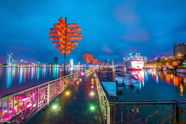 Discover the highlights of Da Nang on a private evening tour, combining culture, spirituality, and city lights. Explore the legendary Marble Mountains, home to ancient pagodas and breathtaking viewpoints, and descend into the mystical Am Phu Cave, famous for its dramatic rock formations and Buddhist symbolism. As night falls, experience Da Nang by night with a relaxing Han River cruise, admiring the city’s illuminated skyline and iconic bridges. With private transportation, a professional guide, and a carefully curated itinerary, this Marble Mountains & Da Nang Night Tour offers an unforgettable blend of history, scenery, and modern charm.
