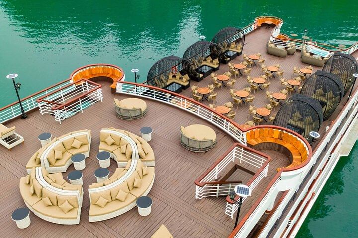 Embark on an unforgettable journey with "Our Cruise," the most magnificent cruise experience in Halong Bay, recognized as a UNESCO World Heritage site. Prepare yourself for an incredible day trip that promises not just to be a journey over water, but a quest for hidden treasures amidst the awe-inspiring limestone karsts and emerald waters. Savor the delectable cuisine that offers a taste of the local bounty, while making lifelong memories. Relish the tranquility and unparalleled beauty of Halong Bay from the best seat in the house - the sundeck. Here, you'll witness the breathtaking scenery unfold before your eyes, a panorama that captures the essence of natural splendor. Don't miss out on this incredible opportunity to experience the very best that Halong Bay has to offer.